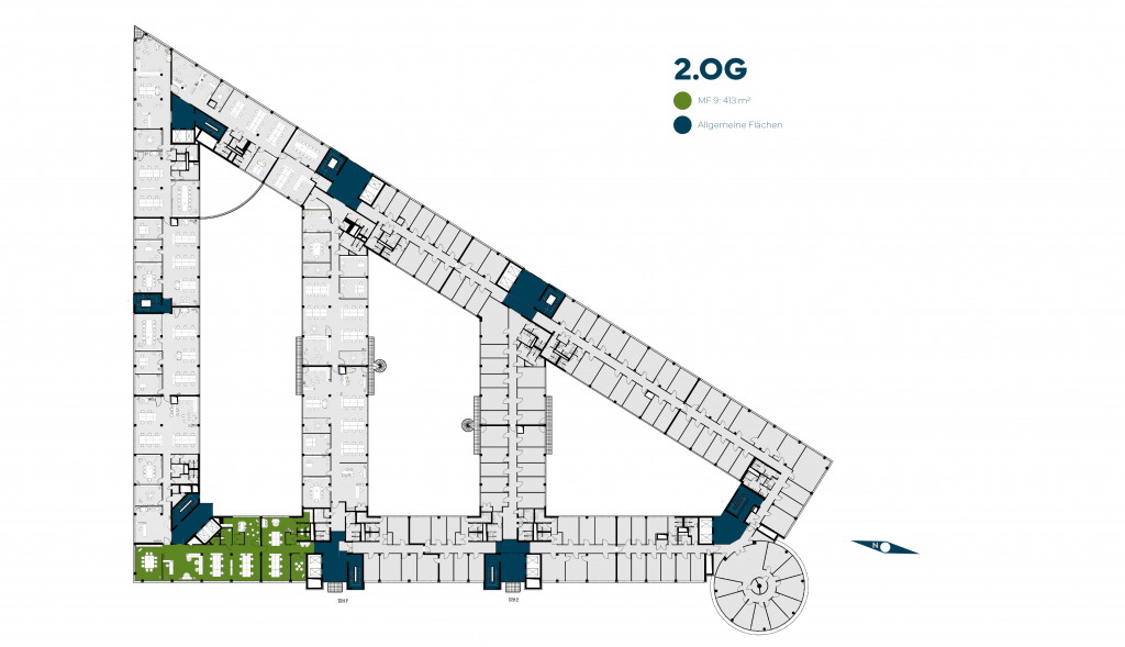 • Bis zu rund 3.022 m² zusammenhängende Geschossfläche im 2. & 3. OG anmietbar